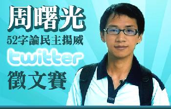(中國)中國人自晚清開始講民主,但講了百多年,民主仍路迢迢。民主大國美國利用Twitter舉行微型網誌徵文比賽,邀請世界各地民眾一人一句,為民主下定義,卻偏偏由未嘗民主滋味的中國人,以區區52個中文字論民主講贏全球。