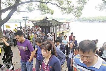 距上海不足100公里的嘉興,90年前只是一個小鎮,如今也難見大都市摩肩擦踵的人流,但在城郊的南湖革命紀念館前,人流卻顯擁擠。記者到訪時所見,當天雖非節假日,但館前仍人頭攢動。服務中心稱,講解員預訂全日已爆滿。“紅船”全長僅16米,為控制人流和保護船內設施,遊人登船需要額外購票,也不能在內拍照。
