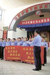 福建建甌公安局主題教育參觀團一行20餘人,在楊家嶺中央大禮堂七大會址宣誓,要更好地“為人民服務”。(圖:香港明報)
