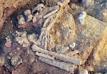 “考古團隊發現這副遺骸時,姿態如母親肚子裡的胚胎模樣,這是中石器時代人下葬的特定姿勢。”
