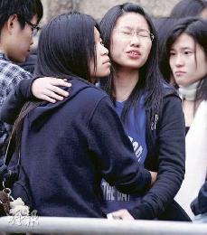 一批瑪利諾校友及在籍學生凌晨時分已到場,嘗試阻止斬樹,但最後仍不能扭轉結局,只能目送鬼樹被“肢解”,部份人激動相擁。(圖:香港明報)