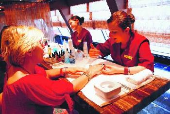 美妙的下水禮只演一場,不過歡樂的場面,每天都在船上上演。負責唱歌跳舞的工作人員,天天都像開心小跳豆般,在甲板帶客人跳舞——記者數月前在“耀目號”上見識過的熱爆氣氛,在“至臻號”上重演。像地中海陽光般的熱情開朗,才是最令客人難忘的意大利氣質。