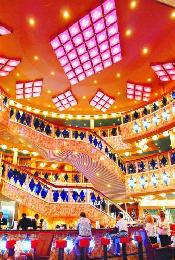 • 大堂以鑽石形裝飾為主題,相當金碧輝煌。(圖:香港明報)