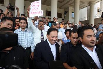 安華於11時40分左右步出法庭大門,逾50名的支持者沖向前在庭外為安華進行長達1分鐘的禱告儀式,而在安華結束新聞發佈會後也高喊“烈火莫熄”、“釋放安華”的口號;部份支持者更高舉“審納吉,不是安華”及“釋放安華”的大字報,雖然支持者情緒高昂,但卻沒有引發任何不愉快事件。