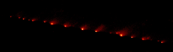 1994年7月16日,分裂成21個碎塊的“蘇梅克-列維9號”彗星(Shoemaker-Levy 9)陸續墮入木星大氣層,撞擊木星,是人們首次能直接觀測到的天體撞擊事件。“蘇梅克-列維9號”是由美國天文學家尤金和卡羅琳.舒梅克夫婦(Eugene and Carolyn Shoemaker)以及天文愛好者大衛.李維(David H.Levy)三人於1993年3月24日在美國加州帕洛瑪天文台(Palomar Observatory)共同發現的。這是他們發現的第9個彗星,因此依據國際星體命名規則依照三位的姓氏命名。此彗星原脫離位於太陽系外側的小行星帶,進入太陽系成為週期彗星;據電腦推算運行軌道結果顯示,彗星於1992年7月8日距木星表面4萬公里時,因受到強大引力而分裂,並以每小時21萬公里的速度陸續墜入木星大氣層。多塊碎片之中,以碎片G的撞擊威力最大,達六萬億噸TNT炸藥,所造成的疤痕比地球直徑更長。此次天體撞擊事件引起了廣泛關注,透過這次事件,人們能知道更多關於木星及其大氣的資料,包括木星扮演著太陽系的“清道夫”角色,以強大的引力來清理“太空垃圾”。(資料來源:維基百科)