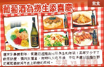 還未到農曆新年,餐廳已經推出七彩魚生和年菜,從公司收工酒,到除夕家庭團圓飯、朋友聚餐、開工宴,一直吃到年15。宴席又少不了飲酒助慶,酒肉太豐富,有時叫人吃不消,不如考慮以低膽固醇的葡萄酒做為年宴上助慶的飲料。