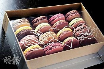 情人節送巧克力,想有新意,不妨送巧克力口味的法式杏仁餅。16粒裝可自選口味,品牌最有名的是黑巧克力味杏仁餅。(Macarons Valentin$350/16粒裝)(圖:香港明報)