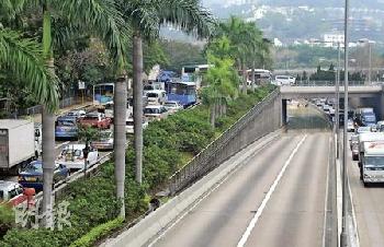 由於上址路段屬低窪地帶,泥水湧出淹浸往灣仔方向線道,形成水深近4呎小水塘,對面往香港仔方向快線亦被浸,駕駛者見狀紛紛煞車,場面混亂。