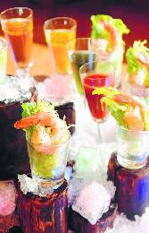 冰鎮鮮蝦咯嗲,選用菲律賓海蝦夠爽甜,醬汁除傳統cocktail汁外,更有紅酒醋汁、薄荷魚露、香橙油醋汁。(圖:香港明報)