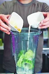 步驟(2):放入攪拌機,加入各2安士的蜜糖和北海道3.6牛奶。(圖:香港明報)