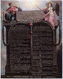 1789年8月26日,在法國大革命期間,法國國民議會於凡爾賽宮通過《人權和公民權宣言》。《人權和公民權宣言》(Declaration of the Rights of Man and of the Citizen)簡稱《人權宣言》,是在法國大革命時期頒佈的綱領性文件。人權宣言以美國的《獨立宣言》為藍本,採用18世紀的啟蒙學說和自然權論,宣佈自由、財產、安全和反抗壓迫是天賦不可剝奪的人權;肯定了言論、信仰、著作和出版自由,闡明瞭司法、行政、立法三權分立的原則,法律面前人人平等,私有財產神聖不可侵犯。1793年6月24日,雅各賓派通過的新憲法前面所附的《人權宣言》又作了進一步的修改,宣佈“社會的目的就是共同的幸福”,提出“主權在民”,並且表示如果政府壓迫或侵犯人民的權利,人民就有反抗和起義的權利。但是,這份宣言裡保障的人權受歷史發展的局限,僅僅是針對“擁有市民權的白人男性”而言的。在當時,女性、奴隸、有色人種是不被當作完整的“人”來看待的。(資料來源:維基百科)