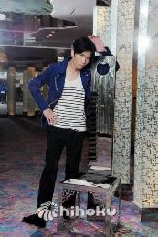 在關島的炎夏之中,蕭敬騰還是穿上長袖衫拍照。(圖:hi好酷明星娛樂網)
