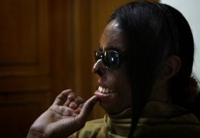 2010年1月12日,21歲的Zafar Iqbal在伊斯蘭堡的硫酸倖存者基金會聆聽電視節目,他是巴基斯坦的雙性人,也是硫酸攻擊的倖存者。