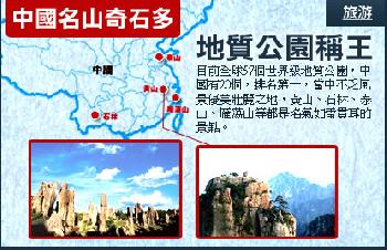 參觀地質公園,似乎並非我們慣常的旅遊活動。乍聽“地質”二字,看似又深又悶又硬。其實不,目前全球57個世界級地質公園,中國有20個,排名第一,當中不乏風景優美壯麗之地,黃山、石林、泰山、雁蕩山等都是名氣如雷貫耳的景點。你可能早已經遊遍它們,就只是沒有認識它們的地質特色罷了。