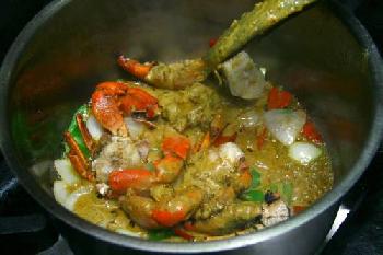 炒香螃蟹和咖喱醬料,拌均後就可以上桌。(圖:大馬光明日報)