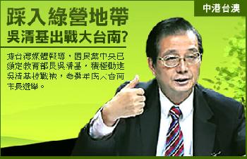 媒體報導,8年多前曾競選台南縣長的教育部長吳清基,是國民黨高層積極勸進的大台南市長人選。