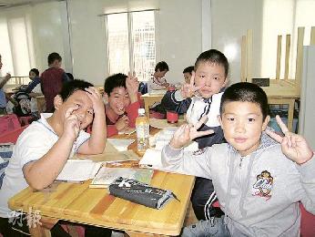正在做功課的外來民工子弟。由左至右為安徽籍孫興鑫和河南籍的梁帥、劉貞瑞和劉超。(圖:香港明報)