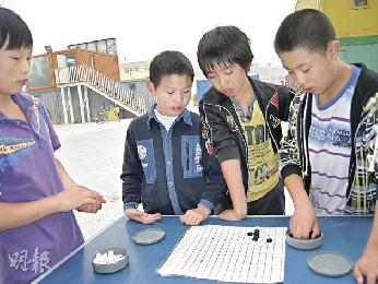 黑橋“活力魔方”社區成為外來打工子女的遊戲和課後作業場地,圖為他們做完功課後在下五子棋。(圖:香港明報)