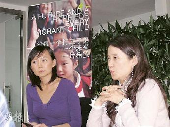 創辦黑橋“活力魔方”社區的NGO“打工子弟愛心會”外聯經理謝穎芝(左)和公關向傳媒介紹組織情況。(圖:香港明報)