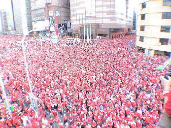2006年10月10日,台灣由施明德等人發起反貪腐運動之天下圍攻,抗議總統陳水扁與執政黨民進黨政權。10月10日雙十節,當天的國慶大典上,國民黨立委於總統致詞時,在觀禮台上高呼倒扁口號及比劃倒扁手勢,因而與民進黨立委發生肢體衝突。親民黨主席宋楚瑜則穿著紅西裝帶領親民黨立委於典禮中途退席,在府前的重慶南路上游走。最後由國民黨立委手持布條自成一隊,高呼倒扁口號經過觀禮台,與三軍儀隊交錯而過。事後親民黨立委黃義交認為,不如此激情演出,不足以表達在野黨的強硬立場。倒扁總部則在當天發動“天下圍攻”,此活動並未經合法申請。上午的活動當中,發生了民進黨立委前往總統府參加國慶大典途中遭到紅衫軍攻擊,阻擾憲兵機車連部隊進場,大典結束後挺扁政府官員及外賓的座車遭紅衫軍民眾拍打等事件。事後行政院長蘇貞昌批評紅衫軍沒有遵守“國慶不鬧場”之承諾,同時更讓外賓進出車輛遭拍打驚嚇。民進黨主席游錫堃批評泛藍和倒扁群眾刻意破壞國家慶典,讓國慶日變成國恥日。(資料來源:維基百科)