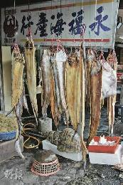 南方澳有一街的海鮮店及海味舖。(圖:香港明報)