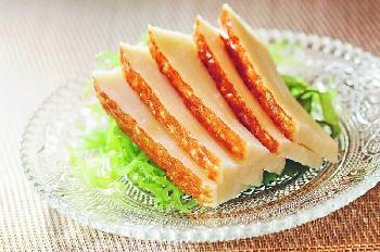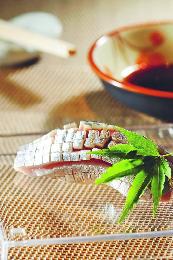 鱧魚片——以鱧魚打成豆腐狀的魚片,爽口彈牙,帶清甜魚鮮,可配小口芥末吃。(圖:香港明報)