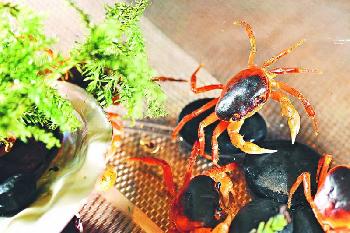 北海道沢蟹——餐廳內可見這種生猛北海道沢蟹,以酒醉暈後放油炸,是夏天時令的佐酒小吃。(只限供應至9月)(圖:香港明報)