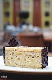 輻射的陰影,沒有驅走東京人的浪漫情懷,所有的食品,都在訴說著季節交替,當中以南瓜最成行成市,一來屬時令產品,二來切合萬聖節。位於東京君悅酒店地層的Fiorentina Pastry Boutique,則把秋天解構得更為細緻,單是看看那件香梨焦糖蛋糕(Pear Caramel),心即被融化。以當造的香梨切為小粒,混入焦糖及白蘭地製成慕絲,再與杏仁餅作層層疊,入口當然頗甜,但真的又香又滑溜。賣相因香梨粒而帶通透感,色澤更呈淡褐黃色,看似秋收的禾穗,又像飄散的黃葉,情感都被牽動了。