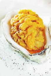 金沙青芥末焗美國珍寶生蠔--以鹹蛋黃加上日本青芥末,沾上外層炸脆的珍寶蠔上,味道濃郁。(圖:香港明報)