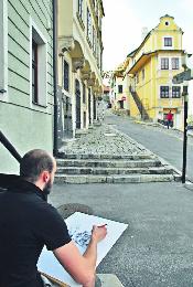 這位當地建築師說,他閒時愛寫生以鬆弛神經,這天他便來到Bratislava的舊城作畫。(圖:香港明報)