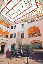 13世紀建築改建成的Hotel Arcadia,中庭以彩色玻璃頂點綴。(圖:香港明報)