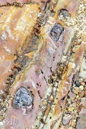 在馬屎洲淺灘邊上,相當突出的紅棕色岩石,在黃昏光線下色彩格外鮮明。這些沉積岩表面破裂,並在地下埋藏經年,帶有氧化鐵的地下水流到岩石上的隙縫(節理),並在節理上沉澱“著色”。其後,上層岩石受到風化,底層的沉積岩暴露在外。本來的節理,經過太陽直接持續暴曬,風化更深,節理間因而出現結節狀的形態。