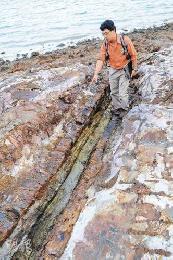 “馬屎洲是相當重要的地質景點。”我們來到馬屎洲,香港地貌岩石保育協會主席吳振揚用上這樣的開場白。他解釋,馬屎洲在2.8億年(二疊紀)前形成,是香港第二古老的岩石,地質面貌豐富,交通又方便,因而成為實習考察熱點。想看各類沉積岩、海岸地貌、岩脈及礦脈入侵,以至多種風化作用,這戶外教室,都可提供豐富教材。