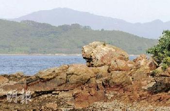 觀石除要具備實證考察精神,有時候也需要想像力,這岩塊像不像胖胖的豬頭?(圖:香港明報)