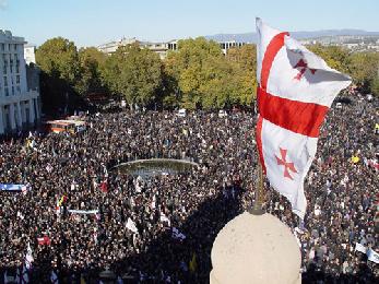2003年11月23日,格魯吉亞總統謝瓦爾德納澤(Eduard Shevardnadze)由於在選舉期間舞弊,在反對者“玫瑰革命”壓力下辭去總統職務。謝瓦爾德納澤於1995年11月首次當選格魯吉亞總統,任期間喬治亞內部犯罪率昌盛,政治腐敗嚴重。謝瓦爾德納澤的一些家庭成員、親密顧問和高官獲得了極大的經濟權力。儘管謝瓦爾德納澤本人並沒有從事貪污,但許多喬治亞人指責他保護貪污人員來以此保證他自己的地位,使喬治亞成為世界上最腐敗的國家之一。2003年11月2日的喬治亞議會大選被大多數國際選舉觀察員以及聯合國和美國政府稱為不公正。其結果導致了許多喬治亞人的憤怒,在多個地方爆發示威。11月21日示威者衝入議會,謝瓦爾德納澤在保鏢保護下逃離議會,宣佈國家進入緊急狀態。11月23日,在俄羅斯的調停下,謝瓦爾德納澤在與反對派領袖薩卡什維利(Mikheil Saakashvili)和祖拉布.日瓦尼亞(Zurab Zhvaynya)會晤後會宣佈辭職。最終,薩卡什維利領導的反對黨獲得了勝利,建立了民主選舉的政府。由於薩卡什維利每次公開露面都拿一枝玫瑰花,這次事件也被稱為“玫瑰革命”(Rose Revolution)。(資料來源:維基百科)