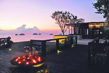 傍晚到露天的Glow Bar和旁邊的摩登泰菜餐廳Jahn,能看到美麗的夕陽和五島在水平線上的完美剪影。(圖:香港明報)