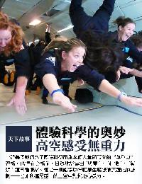 (美國)“興奮”“刺激”“緊張”──一群美國教師為了“體驗科學”,而乘坐讓人暈頭轉向的“無重力”客機。他們在登機前,自然地流露出上述三種情緒。