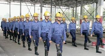 20多名身穿制服的消防員列隊操練,預備向同僚楊俊傑作最後致敬。(圖:香港明報)