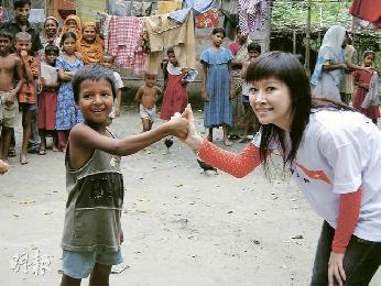 在低潮中投入做義工的關心妍,亦赴貧窮地方探訪小朋友。(資料圖片)(圖:香港明報)