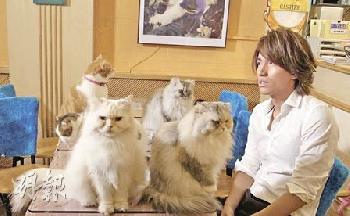 言承旭在寵物咖啡店接受訪問,被多隻可愛貓仔包圍。 (圖:香港明報)