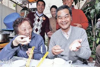 梁振英27日到荃灣二陂坊探訪3個基層家庭後,被問到特首參選人至今仍未有機會同台較量時,再度炮轟唐英年。他表示,唐過去出席近百場論壇均要求“前後腳”,這種安排是他“從沒見過”的,“我不知道唐英年先生為何不願參加同場、同時的論政會”。