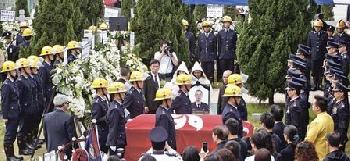 (香港)3月初在長沙灣麗昌工廠大廈四級火中殉職的消防隊目楊俊傑,週一(3月22日)以消防最高榮譽儀式舉殯,覆蓋著特區區旗的靈柩,由消防車駛至出事現場,多名市民從曾被濃煙及烈火蹂躪的工廈窗口探下。“又少了一個英雄……”一名圍觀市民紅著眼慨嘆。