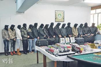 澳門司警搗破一個利用酒店房間詐騙內地豪客的老千集團,共拘捕16男女,包括集團主腦及成員,分別扮演荷官、保安、公關及賭客等不同角色,合謀詐騙內地豪賭客。(圖:香港明報)