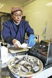 松島魚市場的生蠔每日運到,即開即食,鮮美無比,加上價錢相宜,每隻147日圓。(圖:香港明報)