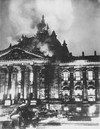 1933年2月27日,發生在柏林消防隊於晚上9時14分開始接到德國國會大樓火警報告。火情同時發生在幾個不同地點,但當消防隊到達時,主要的議會大廳發生爆炸,燃起大火。警察搜索現場時,發現一個名叫馬里努斯凡德爾盧貝的赤裸男人是荷蘭共產黨人。凡德爾盧貝經過嚴刑拷打後,承認是是為了反對納粹黨而縱火。國會縱火案是德國建立納粹黨獨裁政權的關鍵事件,經過和德國共產黨領袖同時進行的審訊,根據“國會縱火法令”,於3月1日宣佈共產黨意圖暴動,因此為非法。第二天,衝鋒隊佔領了全國所有共產黨黨部,德國共產黨是第一個被迫退出國會的黨派。共產黨的領袖們都被捕入獄,衝鋒隊禁止共產黨員參加選舉,因此在3月5日的議會選舉中納粹黨贏得了44%的席位,但仍然沒有能達到三分之二的多數。其中國家人民黨和希特勒站在一起,他們共佔52%的席位,納粹黨通過脅迫或賄賂的手段,強行通過了“授權法”,其中只有社會民主黨沒有投贊成票。希特勒掌握“授權法”後,立即在一個月時間內取締所有非納粹黨派。建立了希特勒納粹獨裁政權。國家人民黨也被迫自我解散。1934年1月10日凡德爾盧貝被處以死刑。(資料來源:維基百科)