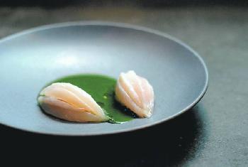醃魔鬼魚配青口芹菜汁--Relae主打北歐創意料理,這道醃魔鬼魚配青口芹菜汁便以45度低溫煮20至30分鐘。(圖:香港明報)