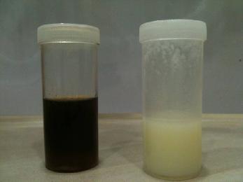到了更換新油的時候,油已經呈深棕色,除了帶有雞油脂的味道外,還散發出一股較難聞的氣味!