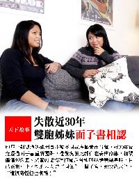 她們在去年1月聚首的兩個月後做了脫氧核糖核酸(DNA)檢測,結果顯示兩人是親姐妹的機率高達99.98%。在連串事情的牽引下,真相終於大白。