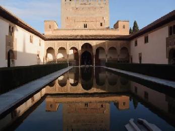 阿爾罕布拉宮建築群是格拉納達的象徵,堪稱是回教徒統治西班牙時期留下的偉大建築物之一。它建於13、14世紀,盤據在格拉納達的山頭,是摩爾人作為堡壘的宮殿。內有美麗的阿拉伯式花園,種植了各種灌木叢和奇花異草。宮內最大的庭園裡,一個長方形的水池佔據庭園,景致優美。