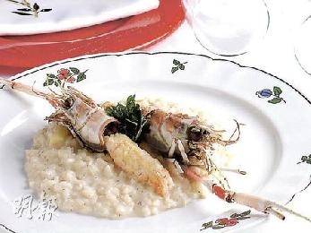 小龍蝦白蘆筍意大利飯——飯粒同時滲滿蝦的鮮味、Mascarpone芝士的乳香和白蘆筍的清幽,最喜歡那些飯粒,煮得軟硬適中。(港幣320元,a)(圖:香港明報)